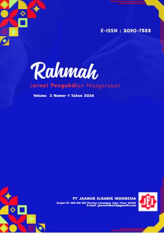 Rahmah : Jurnal Pengabdian Masyarakat is a community service journal focused on the results of research based on community service, increasing community capacity, community empowerment and community empowerment innovation. This journal contains studies of community service in the fields of science including education, engineering, agriculture, social humanities, psychology, counseling , forestry, fisheries, animal husbandry, Islamic studies, Islamic boarding schools, da'wah, communications, computers, management, industry, arts and culture and health.